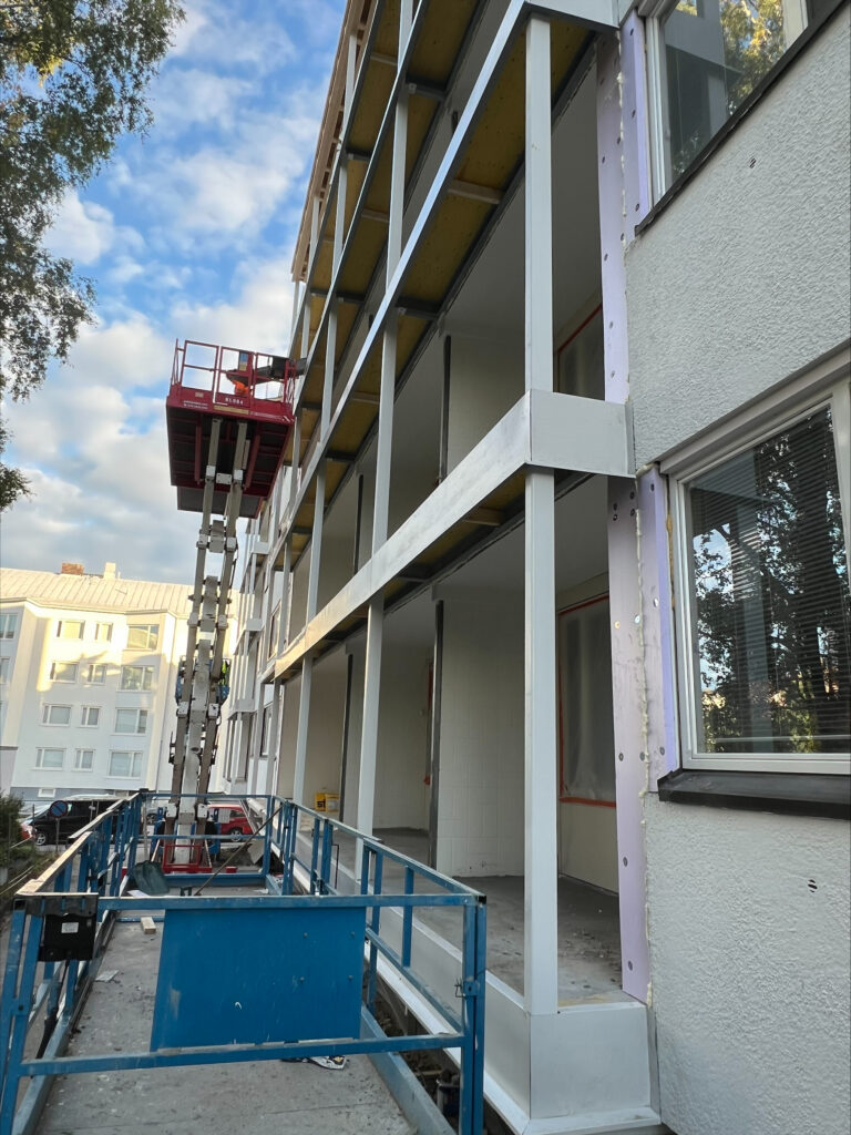 I Björkparken, beläget i centrala Vasa, genomfördes en omfattande balkongrenovering mellan maj och november 2025. De ursprungliga balkongerna upplevdes som för små, vilket ledde till att de utvidgades med 60 cm med hjälp av en stabil stålram. Samtidigt installerades nya, enhetliga balkonginglasningar.