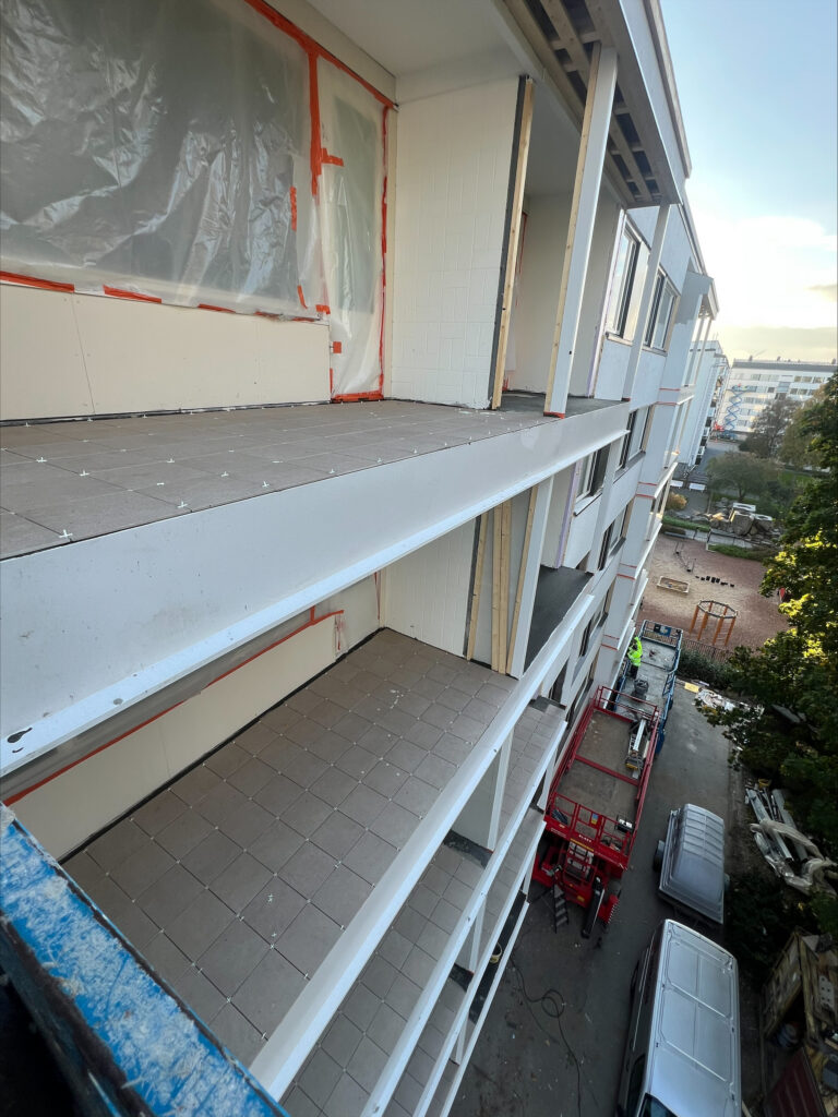 I samband med utbyggnaden av balkongerna förnyades även en del av byggnadens ursprungliga tak, vilket omfattade läkt, skivläggning, underlagspapp och plåtarbete. I entreprenaden ingick också målning av innergårdens fasad och dörrar samt förnyelse av husets rörelsefogar.